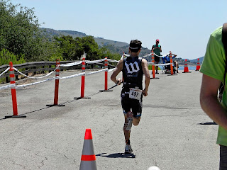 Although my bike split doesn't reveal it, I was actually killing it for the first 45 miles of that course. I spun up "Nasty Grade" which is a tough 2 mile? climb around mile 42-45ish. I was passing a ton of people and still feeling pretty good. However once we reached the top and had to deal with numerous other rollers for those last 10 miles, I started falling apart. My legs started cramping and power went waay down. The wind almost seemed tougher at this point too. I tried not to loose focus, but a ton of people started passing me and I started getting pissed. My race was quickly getting away from me. No matter how much I battled, my legs where just thrashed and cramping and no nutrition or salt tab was gonna save this ride. With about 2 miles to go I just started getting my sh*t together for the run. I was getting in as much water as I could and just started focusing on the task at hand. I was a little concerned with how my cramping legs would react to running now...only one way to find out.